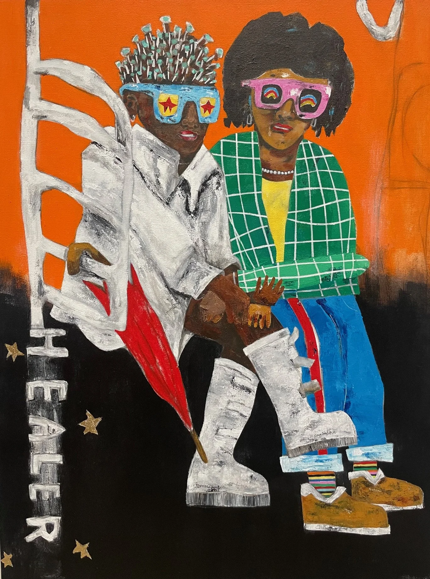 Hair Train, acrylic on canvas, 32(h) x 24(w)in 2025